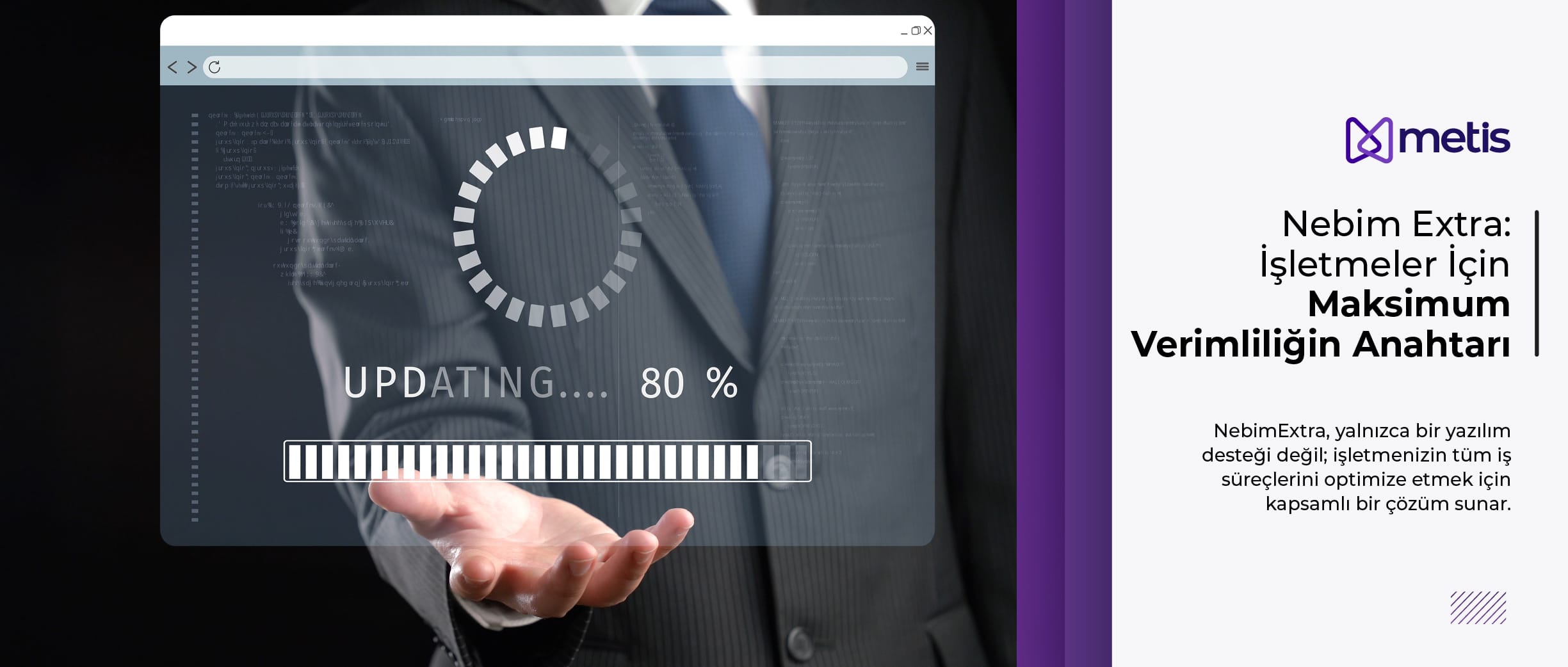 NebimExtra, yalnızca bir yazılım desteği değil; işletmenizin tüm iş süreçlerini optimize etmek için kapsamlı bir çözüm sunar. Metis Yazılım’ın tecrübesi ve uzmanlığı ile birleşen NebimExtra hizmeti, dijitalleşme sürecinizi daha etkin ve verimli bir hale getirir.